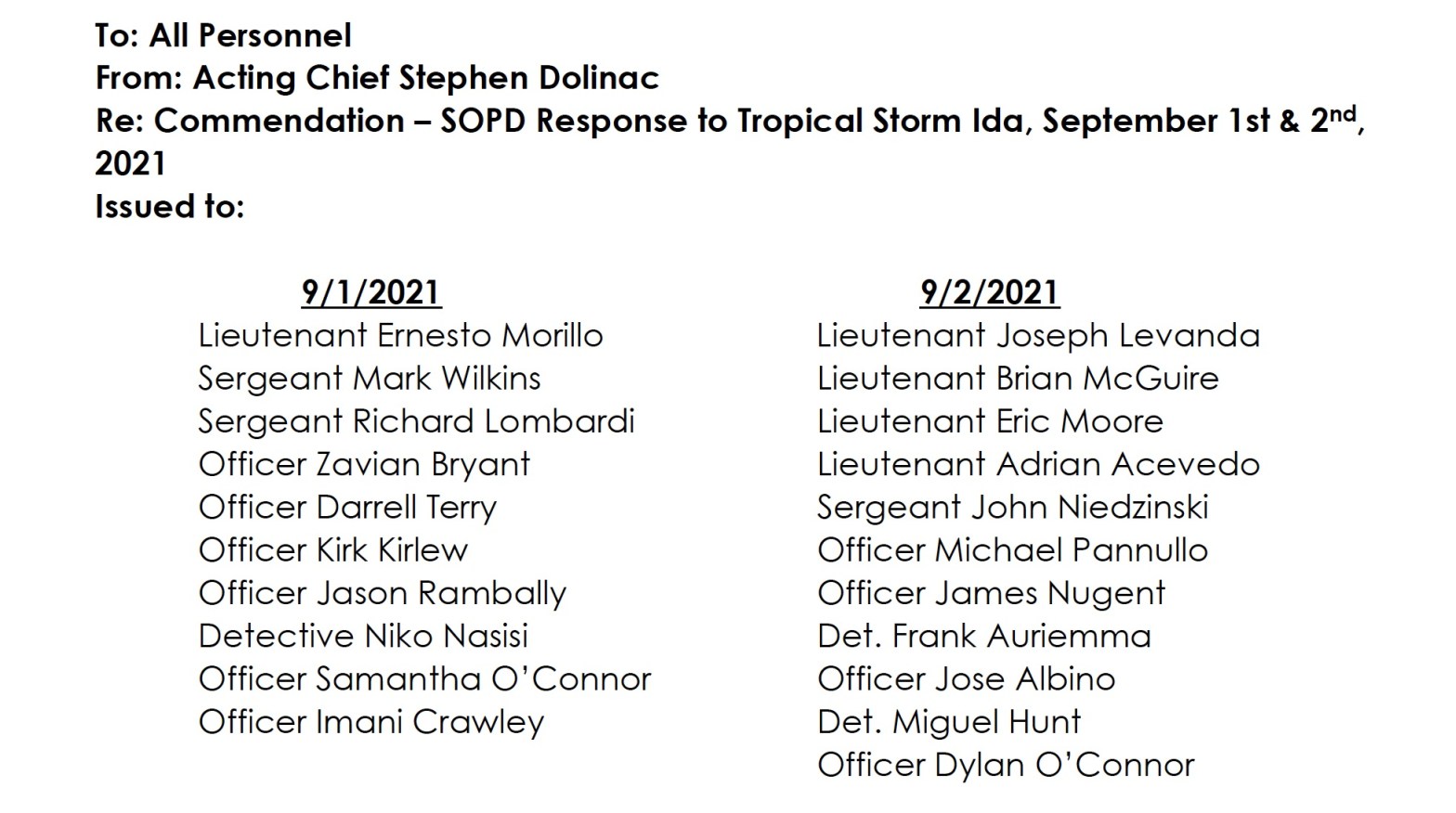SOPD Commended and Thanked for their Heroic Actions During Hurricane Ida